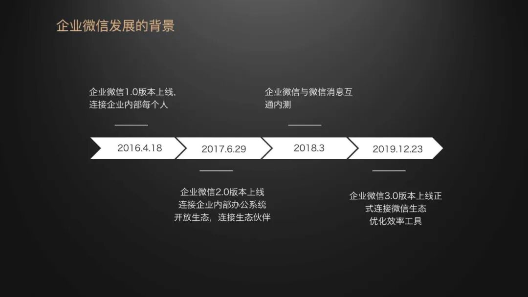 回顾完这个时间线,大家就对企业微信的发展建立了一个概念。