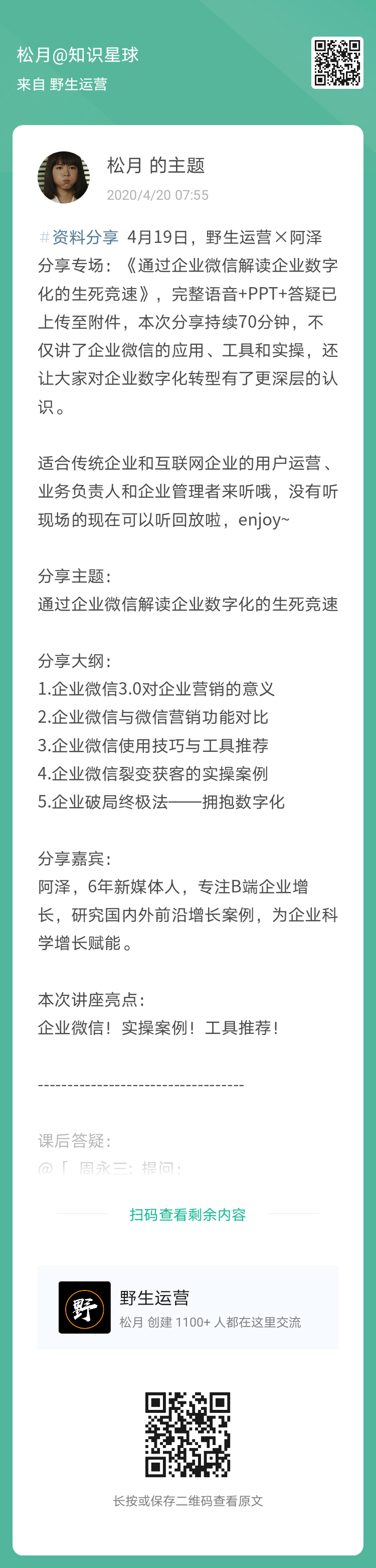 本文来自4月19日晚9点,专注B端增长的阿泽在野生运营快闪群的分享,主题《通过企业微信解读企业数字化的生死竞速》内容精华,本文仅为分享的三分之二。