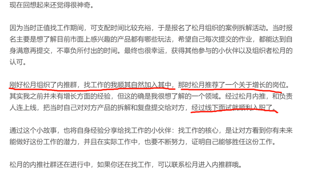 还有参与者通过这次案例拆解活动找到了心仪的工作(松月推荐的,一脸自豪):