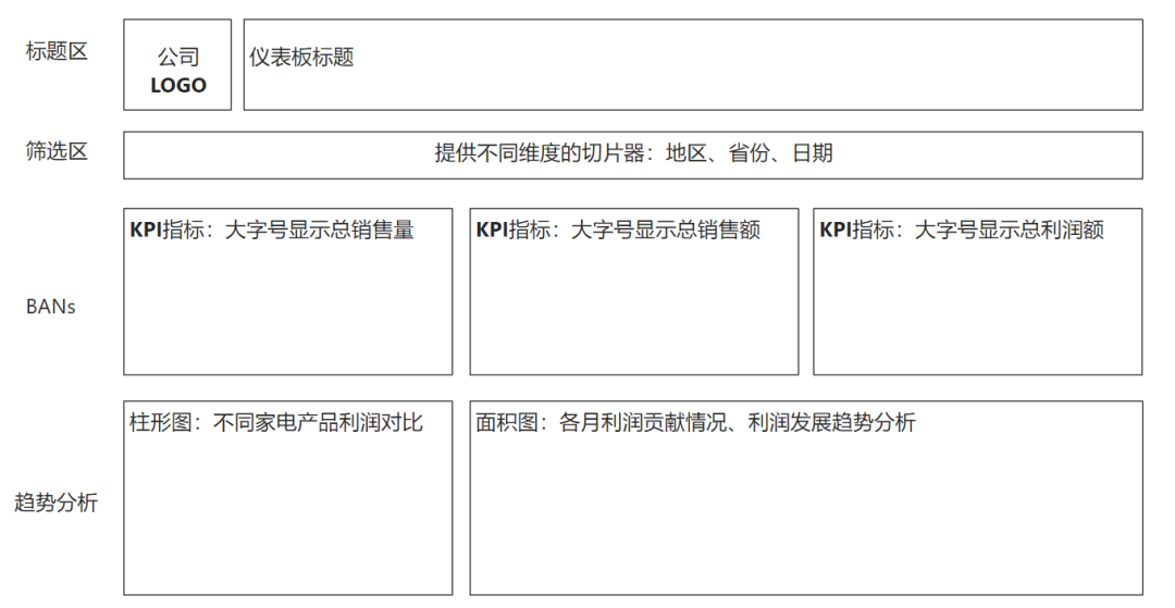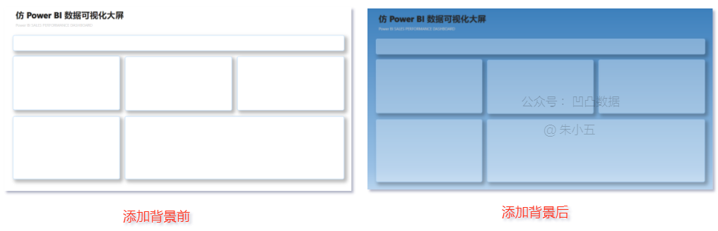 至此,准备工作已完成,数据也处理好了,只需调整格式实现数据看板。按照前文中的草图布局,我们可以通过设置背景图片、插入文本框、插入圆角矩形实现简单的布局,如下图所示。