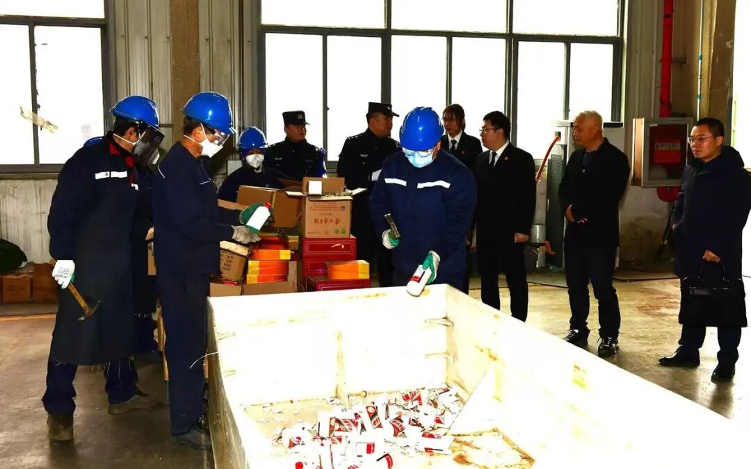 为坚决杜绝假冒注册商标的产品再流通,扰乱市场秩序,侵害消费者权益,涉及没收销毁的假冒注册商标的产品必须彻底破坏其使用功能。北京产权交易所受丰台法院委托,通过摇号形式确定具有销毁资质的公司,协助开展销毁工作,保障上述物品达到销毁标准,避免再次进入商业流通领域。同时联系该注册商标的使用权人贵州茅台酒股份有限公司现场参与销毁。北京产权交易所配合丰台法院对销毁假冒商品的全过程进行录像留证,丰台区人大代表亲临执行现场见证。
