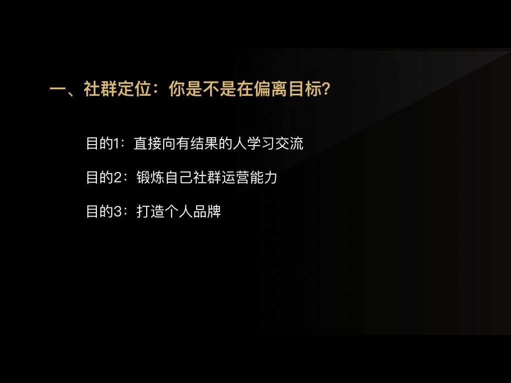 看过太多人,最初本来纯粹地做着社群运营,但后来就变了味,割人割韭菜,吃相十分不好看,看到这些不停摔倒的案例,我也在持续敲打自己,切勿成为他人的教训,所以一直要牢记着自己建立这个社群的初心,即希望通过这个群能直接向有经验的人学习交流(这种方法比自己摸索高效的多),然后锻炼自己社群运营能力,最好还能打造个人品牌。