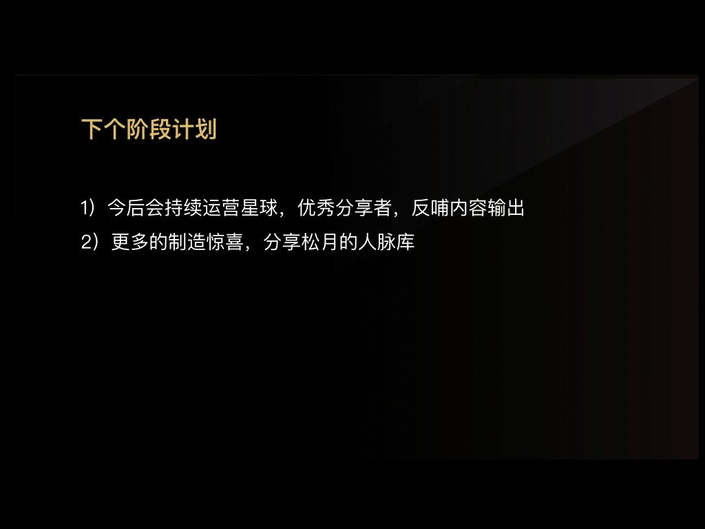 要做透社群运营,必须要从线上发展到线下,线上聊千遍不如线下见一面,未来一段时间,松月计划建立各地分舵,首先是北京,上海,广州,深圳这4个城市,这些分舵存在的意义是举办各种线下活动,持续有效的互相学习和深度链接,有相关想法,并且有组织能力的小伙伴,在这次分享后可以找我报名哦~