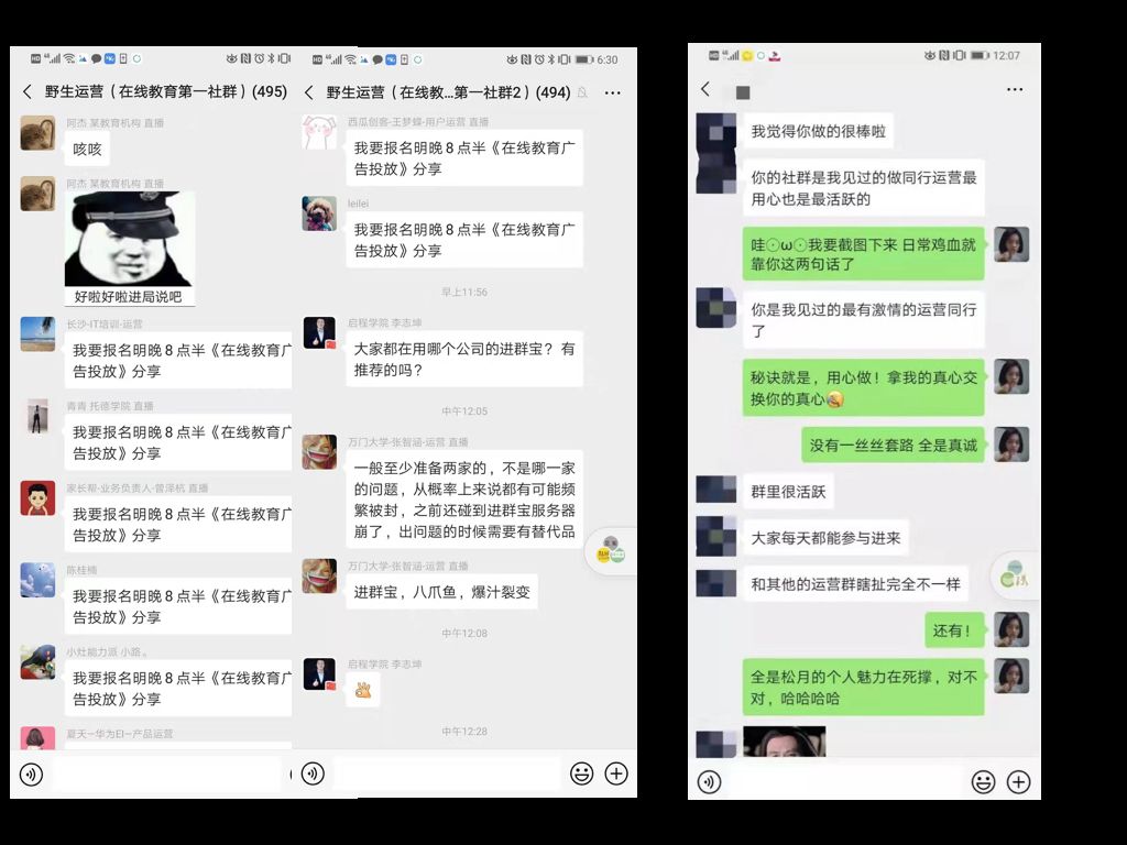 3)群内话题讨论,围绕当下最热门且对大家工作影响最大的话题展开讨论,比如微信外链被限制,在线教育做月/季会员有没有出路等;
