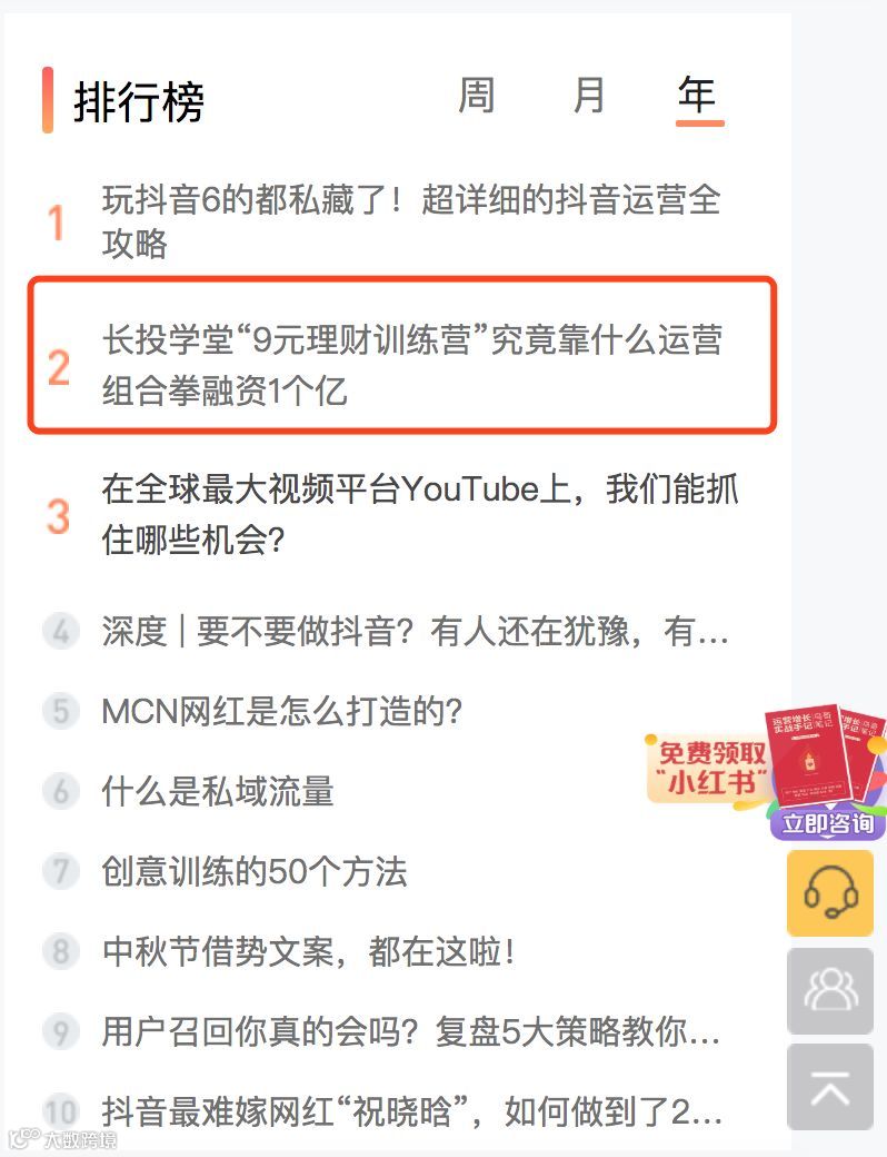 第三次是源于我要做训练营,是的,我从作业帮出来了去了一家新媒体公司,要自己搞训练营,包括课程设计、进群流程、转化环节,当时就两个人,思路一团乱麻,于是我报名了业界非常知名,且转化率惊为天人的长投小白理财训练营,前后潜伏20天,终于把完整运营套路搞透了,并用在自己的训练营中,实现了49%的购买转化率,顺势输出了一篇《长投学堂“9元理财训练营”究竟靠什么运营组合拳融资1个亿》,相信群里很多人都是通过这篇文章加到我的,3月发表,到现在每天还有50多人加我要转化话术,这篇文章效果也不错,今年鸟哥笔记年度人气TOP2,同时印在了鸟哥笔记第二本小红书上,同时也要为我的合伙人独孤伤打call,他的文章也在小红书里哦。