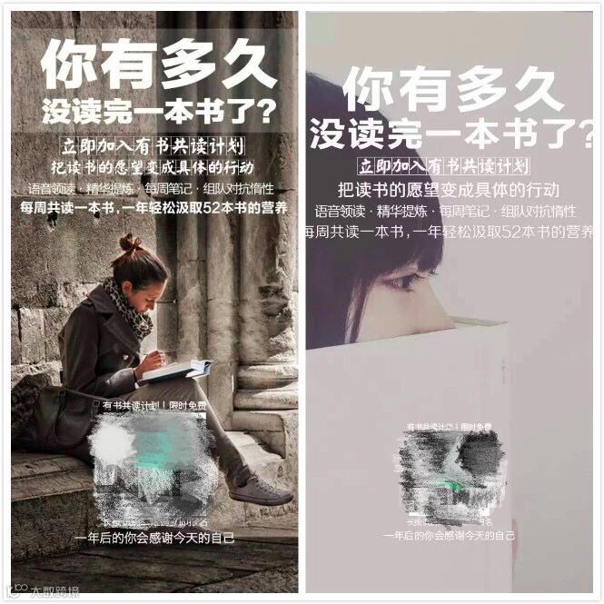 比如有书的“你有多久没读完一本书”,一个积极上进的人看到后会咯噔一下,身边人都在读书学习进步,就他在原地踏步,自然就心里焦虑,而看到“立即加入共度计划”,可能就毫不犹豫的报名参加了。