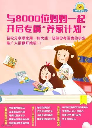 再比如跟大熊玩英语的口号:与8000位妈妈一起,开启专属“养家计划”。