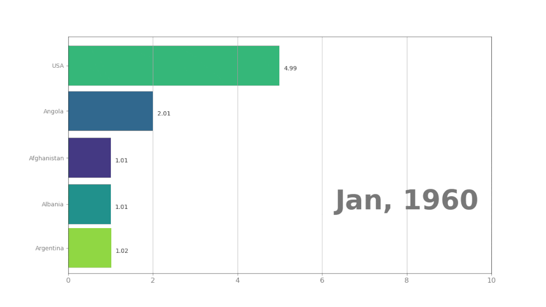 输入数据后,Pynimate将使用函数Barplot()来创建条形数据动画。