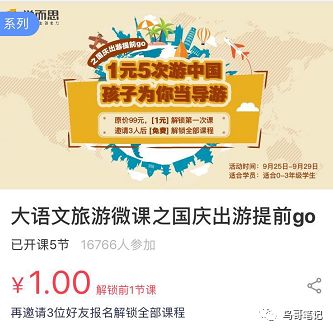 如果非要在节假日开课,针对小学生群体,其实1~2节的轻课更合适,比如今年国庆《学而思旅行1元课》: