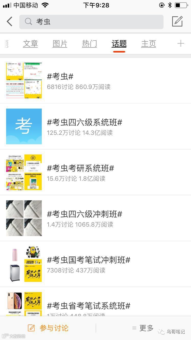 在微博里搜索“考虫”,会出现8382563条结果,“考虫四六级系统班”微博阅读总14.3亿,不仅如此,在其他流量平台,如知乎、百度知道、百度贴吧等也全都是来自用户的自发好评。