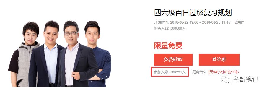 其中四六级过级复习规划课(免费),28万人报名量;四六级礼包课(单人购买9.9,三人成团1元),连卖4期,累计8万人购买,如此亮眼的数据,和精益化的引流课设计密不可分。下面重点对这类引流课类型进行分析: