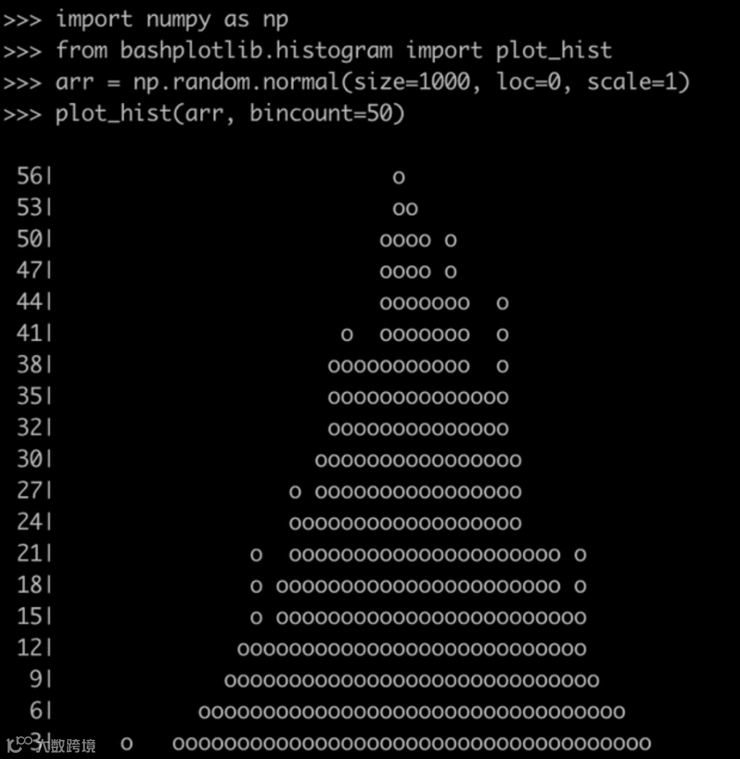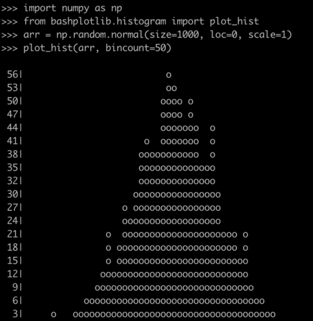 终端版的Matplotlib。尤其是当你想要在没有GUI界面的服务器上画图时,你就知道Bashplotlib的强大了。