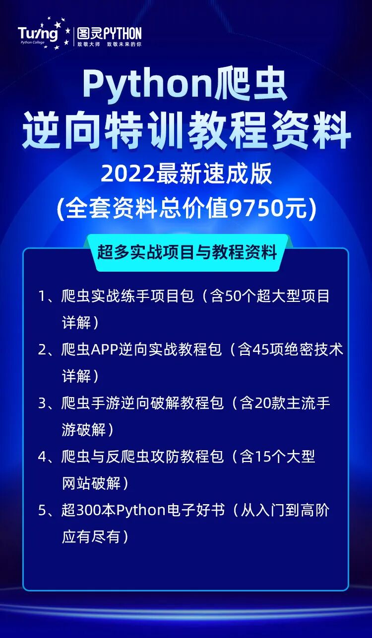 报名参加并完成特训的朋友还可以免费获得一整套大厂内部的Python爬虫逆向教程包!学完速成干货课程,要第一时间拿大厂高阶项目实战巩固,进一步提升技术,这套资料就非常适合练手!