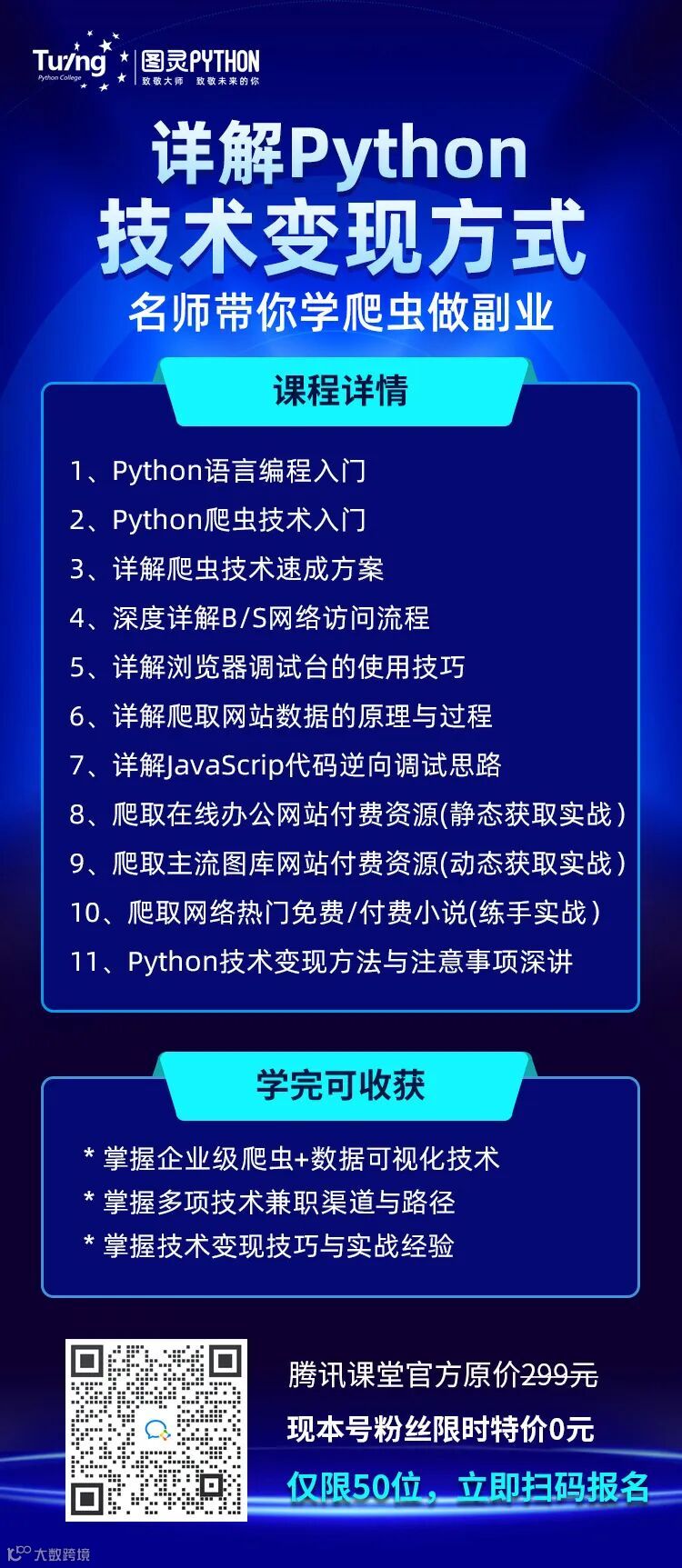 对于想以快速度高效率的方式来搞定技术的朋友来说,我推荐大家直接来腾讯课堂参加Python爬虫技术的0基础速成特训!