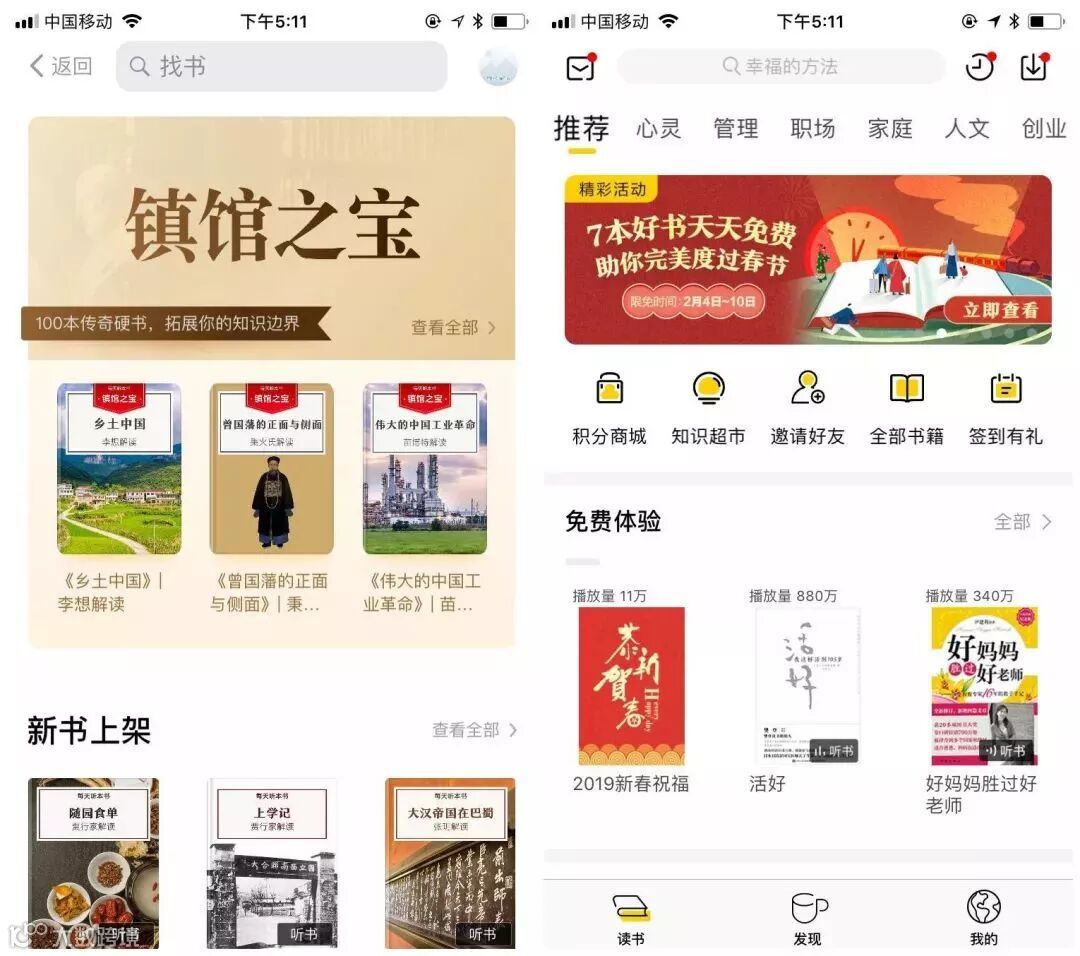 得到,2017年5月上线“每天读本书”产品,4.99元听一本书,365元年卡畅听一整年,用人格化的转述,帮用户迅速扫描一本书的核心内容。而且年卡用户听过的每一本书,其一位朋友可以免费共享;