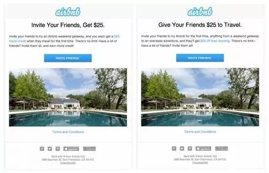 在这十几年中,我觉得做的最好的莫过于Airbnb:新用户在收到朋友邀请注册其网站时,上面的文案清楚的写着“你的朋友Jason为你的首次Airbnb之旅送上25美金,这将会是你最好的旅行,你要感谢你的朋友”。