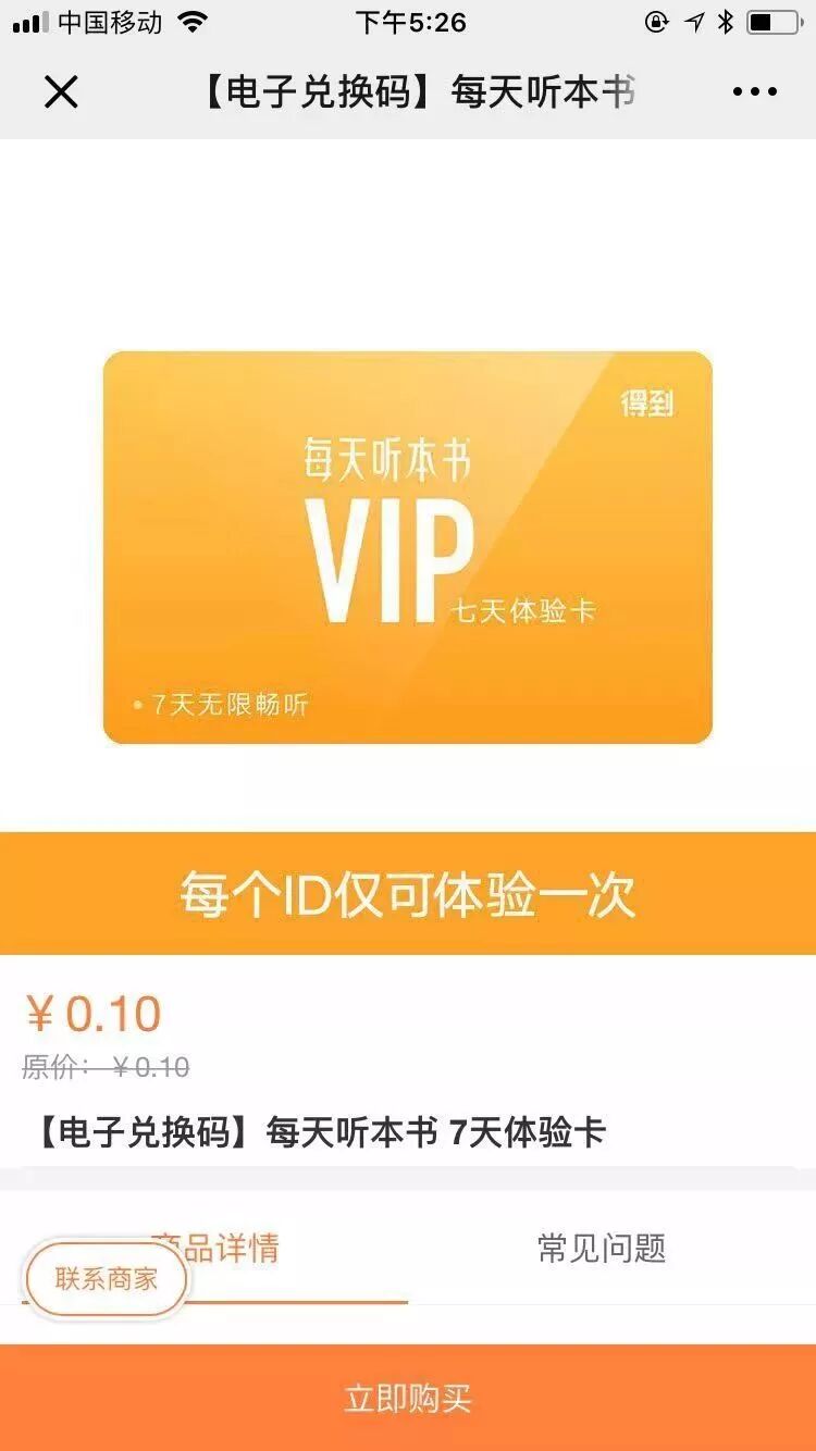在内容生产中期,内容逐渐充实后,每个分类提供3~5个爆款产品让新用户免费试听;在内容生产中后期,内容已有一定的沉淀,产品对拉新有更大的需求,可采用新用户全场免费7天试听,或者是付出极低的成本,比如1毛钱购买VIP体验卡(试用7天),让用户充分体验后再做消费决策。