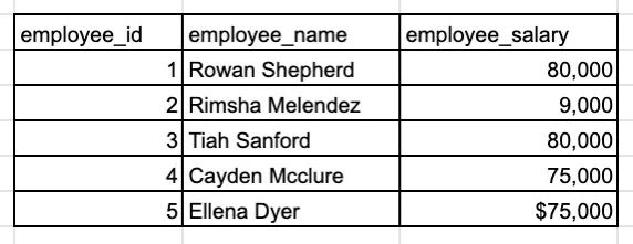 在上一个示例employee_salary表中,可以让雇员共享相同的名称。