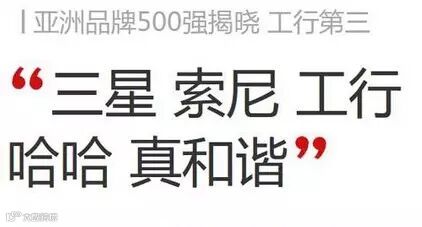 2015年《亚洲品牌500强》排行榜21日在香港揭晓,共有20个国家和地区的500个品牌入选,韩国三星、日本索尼和中国工商银行名列前三。