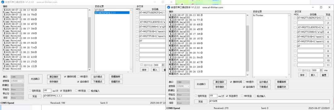 一个为基站,先发送AT+SETCFG=0,1,1,1 然后再发送AT+SAVE