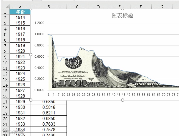 然后双击面积图系列,在【设置数据系列格式窗格】中,依次单击【填充与线条】→【填充】→【图片或纹理填充】→【剪贴板】。
