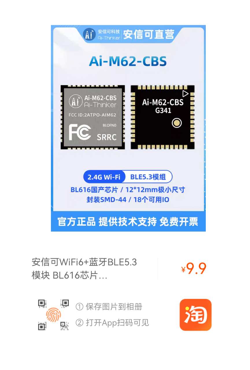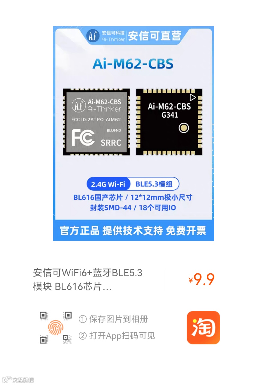 大家好,Ai-M62-CBS是由安信可开发的 Wi-Fi 6+BLE5.3 模组,该模组搭载BL616 芯片作为核心处理器,并可与市面上3861L模组pin to pin ,可广泛应用于音视频多媒体、物联网(IoT)、移动设备、可穿戴电子设备、智能家居等领域,适合低功耗产品市场,比如门锁行业等。