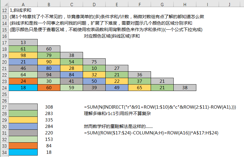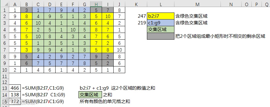 掌握引用或数学思维,sum的求和方向不限于横纵方向的