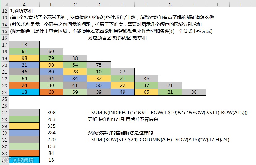 以上为sum在数组阶段一些常见不常见的求和应用,这个函数在熟悉数组的条件构造后能配合实现太多的求和问题。