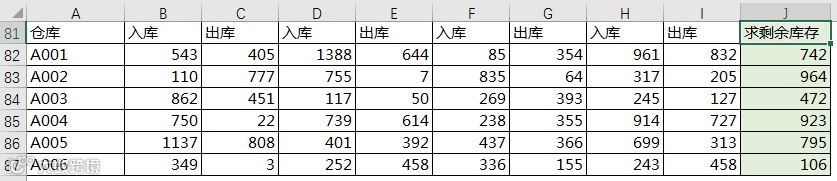 =SUM(NOT(B$82:I$82<>{"入库";"出库"})*B83:I83*{1;-1})