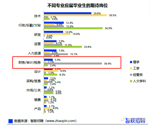 经管类人才则首选财务/审计/税务,占比36.4%。