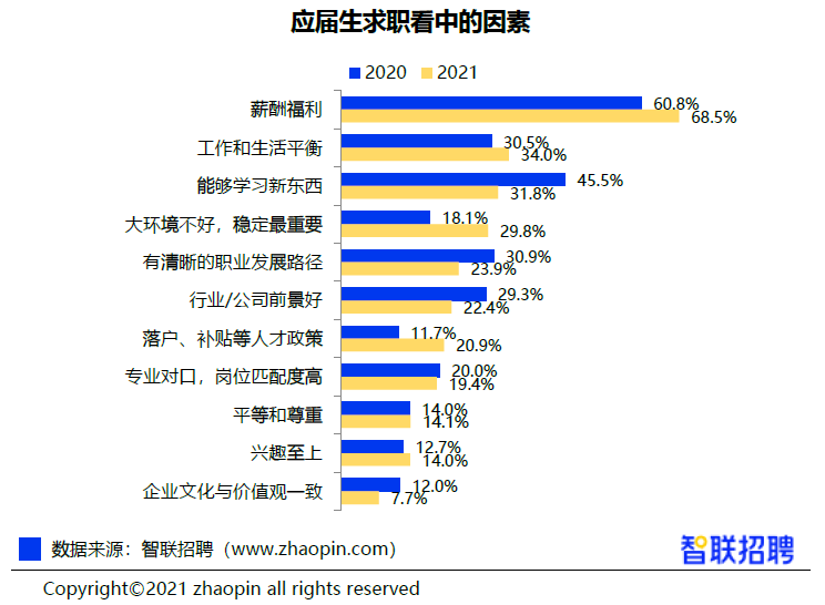 本届毕业生求职更注重现实,薪资、稳定、落户等因素权重提高