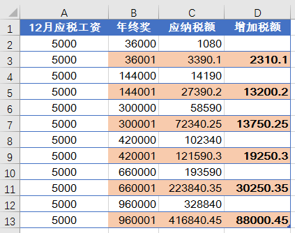 另外,在不考虑12月份应税所得额的前提下,关于年终奖多发1元少得几千的坑,老祝也整理在这里了,小伙伴们计算时务必注意: