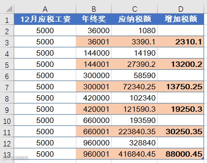 也就是先填平了12月份不足5000的坑,剩余部分再计算个税。