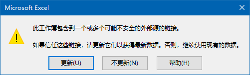 如果使用函数引用了其他工作簿中的数据,文件打开时就会有这样一个提示对话框:
