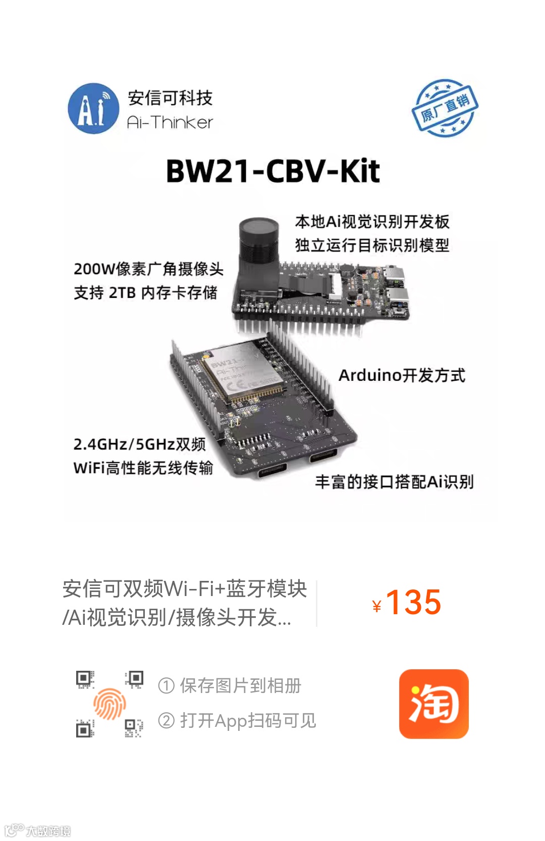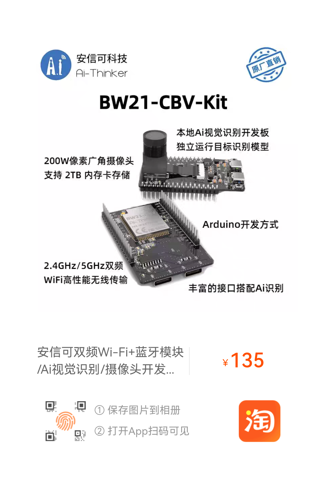 作为一款本地AI图象识别开发板,BW21-CBV-Kit它能够独自运行目标识别模型。2.4GHz+5GHz的双频Wi-Fi,提供高性能的无线传输能力,让图象传输更加流畅。丰富的接口,搭配着AI识别,可以扩展出无限可能。