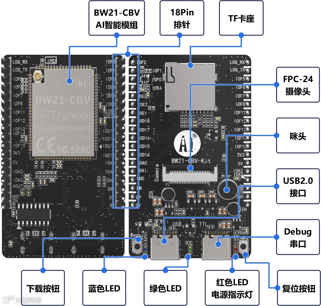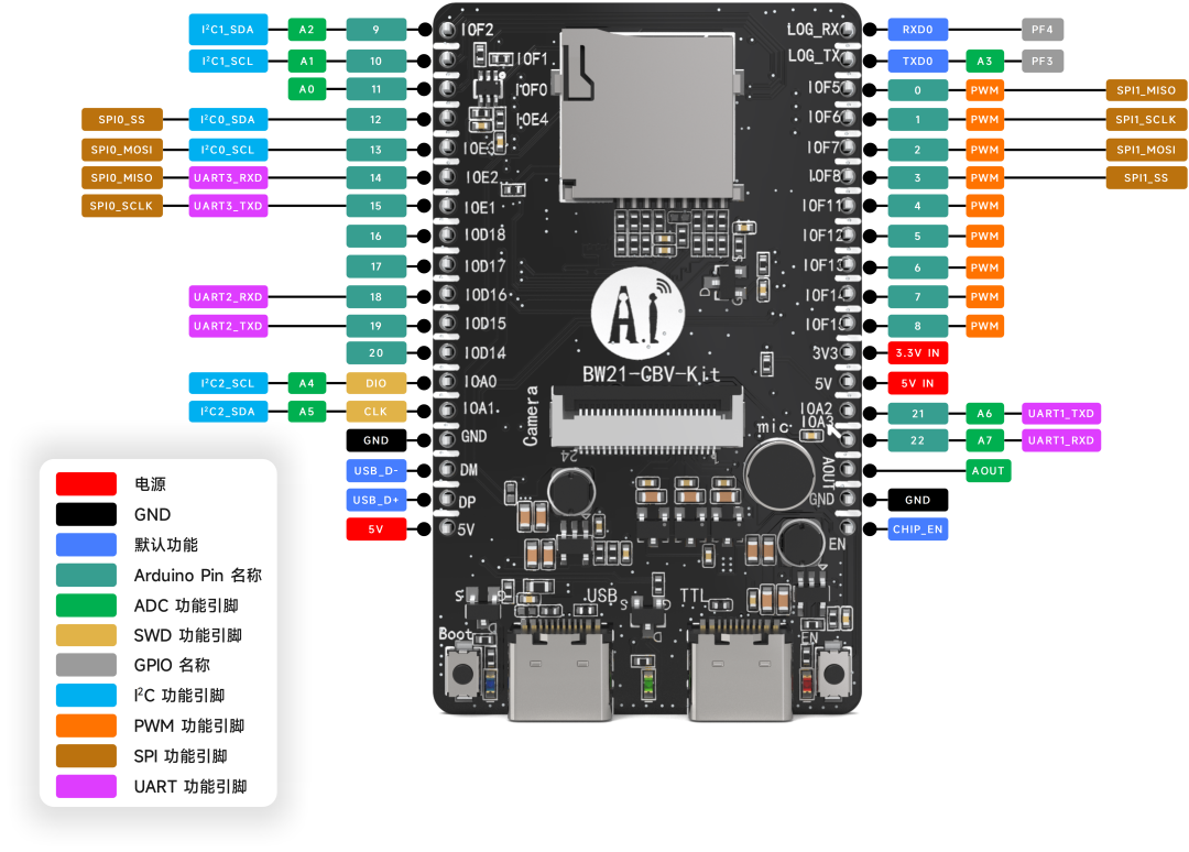 BW21-CBV-Kit 使用 Type-C USB 供电,这在许多智能设备中很常见。
