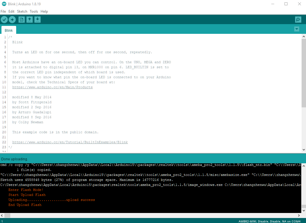 BW21-CBV-Kit 通过最广泛的开发环境之一 Arduino 与开源世界相连。有关 HDK、SDK、API 文档、示例指南等更多信息,请参阅 Ameba Arduino SDK 页面。