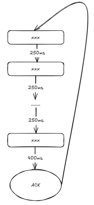 确认包设置的间隔为固定400ms,确认包其实是每发20个发送包后单独发送的一个包,这个包的间隔会比较长以保证能成功发送并被接收,通过确认包可以进行一些ack的校验以应对一些丢包处理。