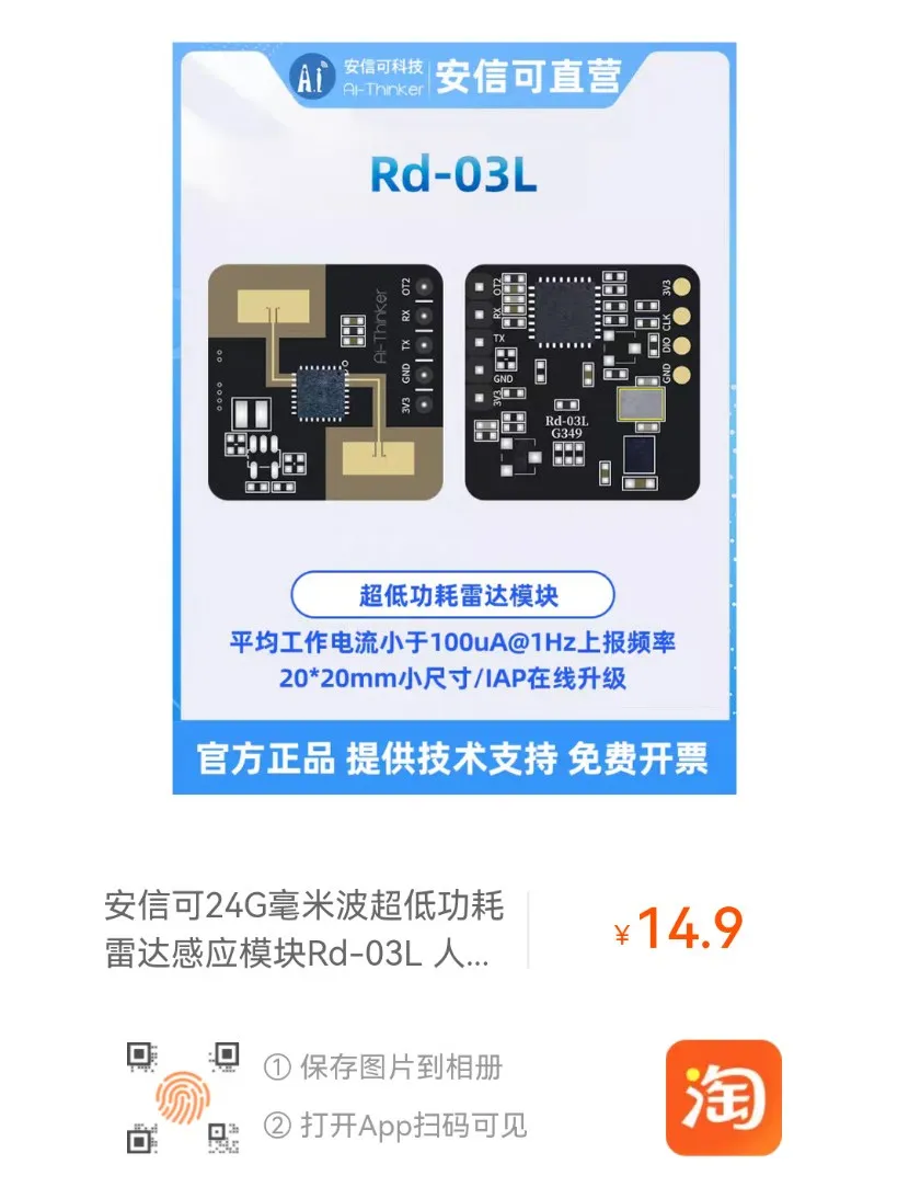 Rd-03L是安信可雷达系列的超低功耗人体存在毫米波传感器,包含极简化24 GHz雷达传感器硬件和低功耗人体存在感应智能算法固件。