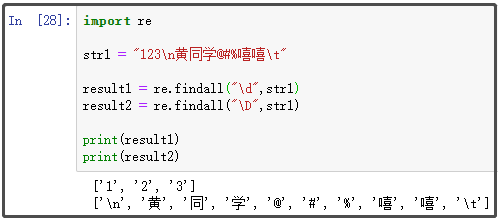 代码解释:\d仅匹配数字,\D用于匹配非数字,很好理解。