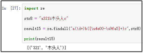 result15 = re.findall("a(\d+)b([\u4e00-\u9fa5]+)c",str8)