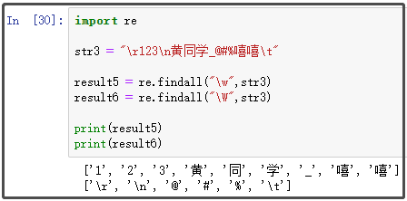 代码解释:\w相当于[A-Za-Z0-9_],超好用(值得注意),\W匹配非单词字符,了解即可。