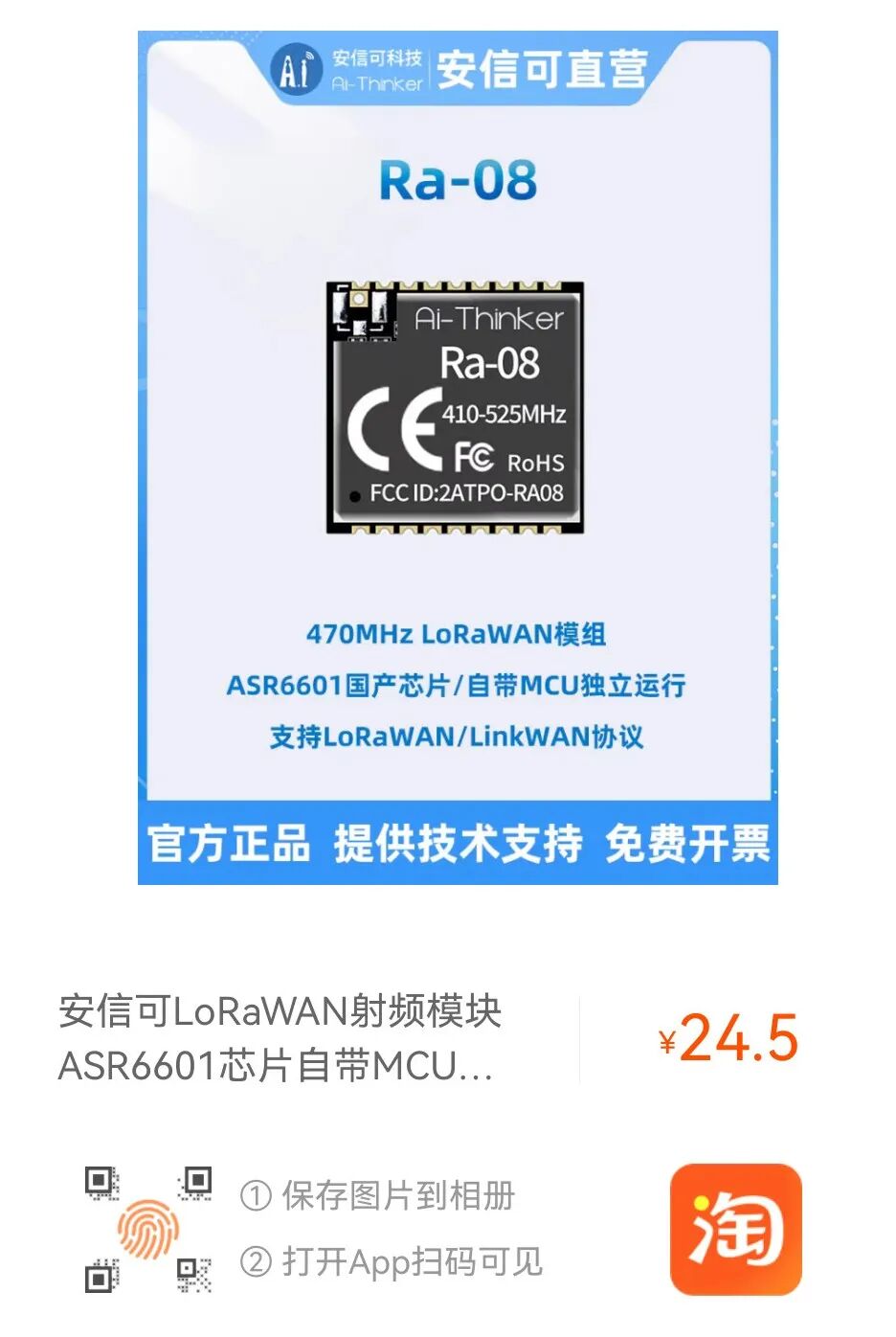 Ra-08H模组支持 803MHz—930MHz频段。