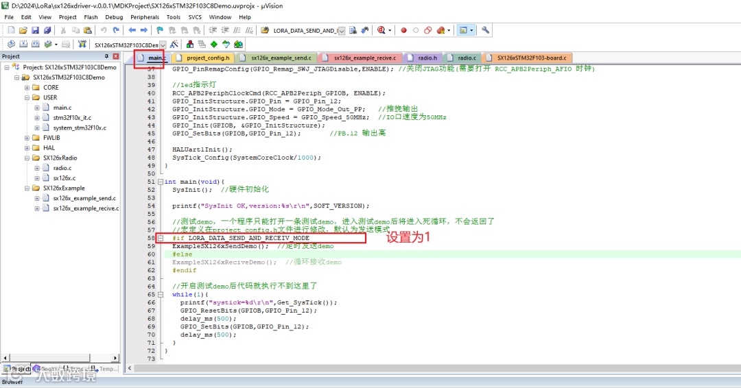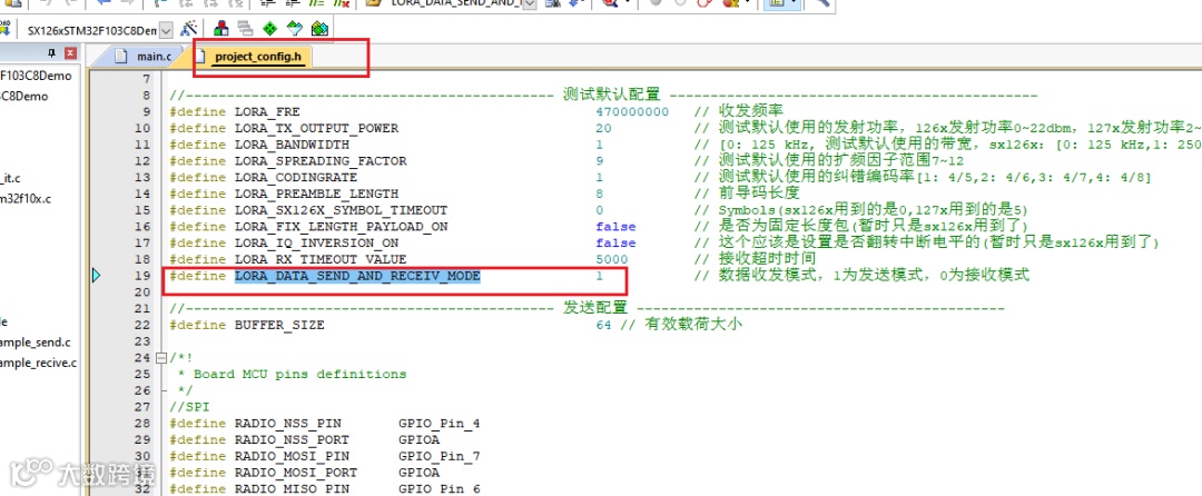 LORA_DATA_SEND_AND_RECEIV_MODE来控制设置模组接收模式还是发送模式;