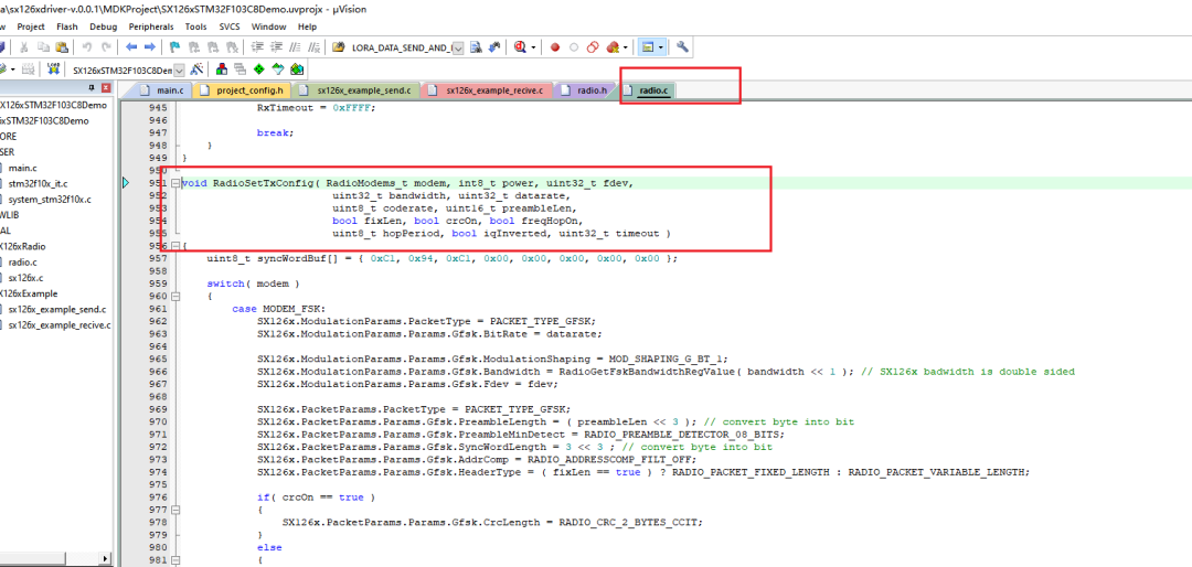 Radio.Init( &SX126xRadioEvents );注册了以上五个回调函数,如下图为此函数的实现
