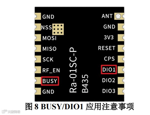 与主控MCU的通信接口,除了SPI接口外,还要把BUSY/DIO1连接到主控 MCU的IO口。
