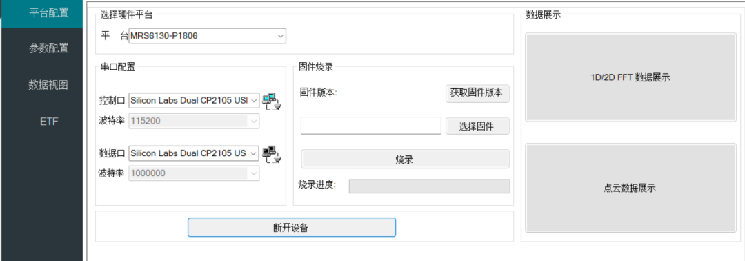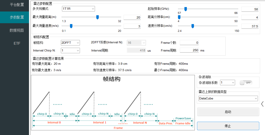 频率这里可以调节 57~64.1,这其实就是工作频段,也说明了这个雷达工作在这个频段中。