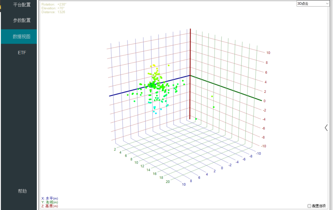可以看到输出了三个坐标系的信息和速度,说明雷达可以采集到三维信息,可以获取到空间内的更多信息,这也为姿态检测铺垫了基础。