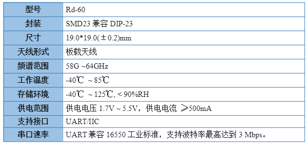 Rd-60支持IIC 和 UART等接口,即插即用,灵活应用于不同的智能场景和终端产品。