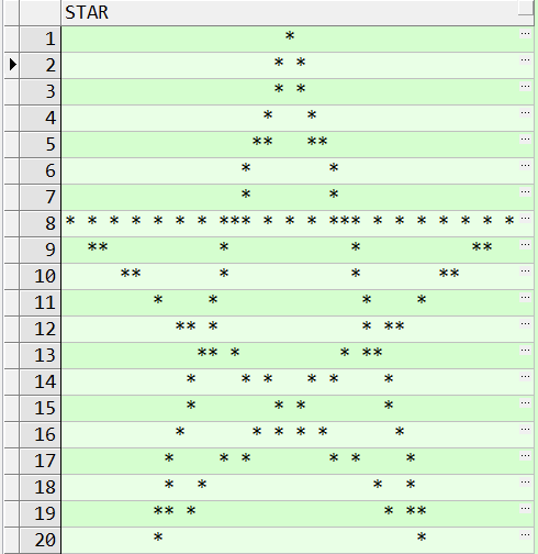 sin(trunc(n / 20) * (1 - 1 / 5) * 3.1415926) y
